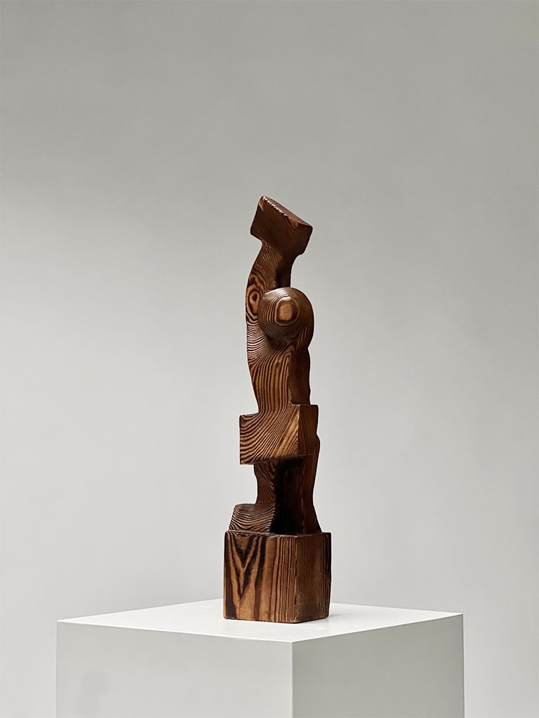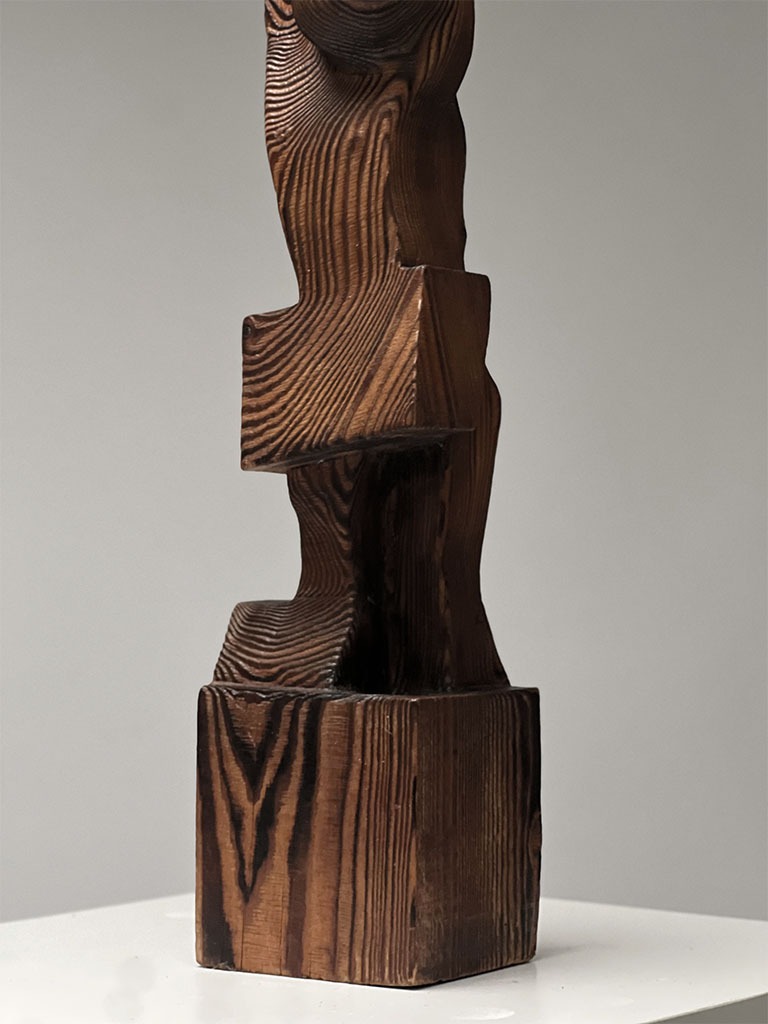 A large cubist-shaped sculpture made of solid pine. This unique and eye-catching piece of art that combines the natural beauty of pine wood with the abstract and geometric elements of cubism. The natural grains and knots in the wood add a rustic and organic touch to the overall sculpture. combined with the sharp lines and shapes of cubism, it creates a striking contrast that is both visually appealing and thought-provoking.